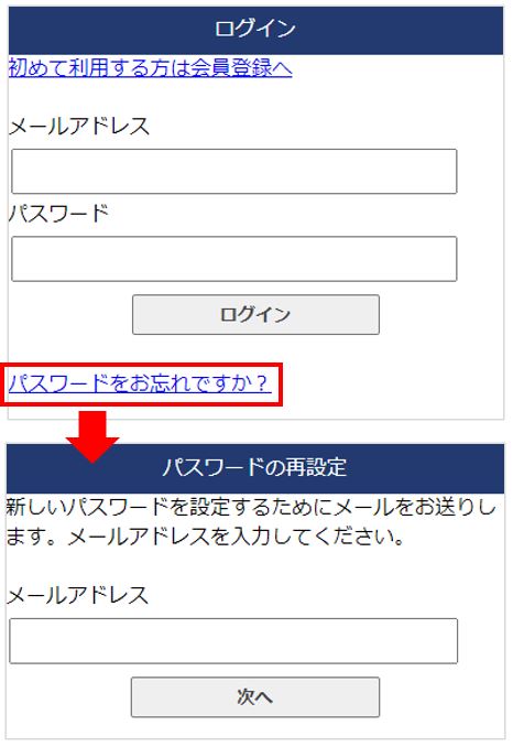 ※パスワード再設定画面にてエラーが発生している場合は、以下「パスワード再設定ができない」にお進みください
