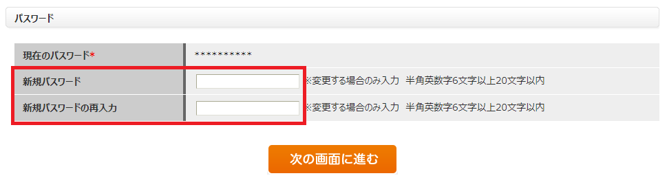 ②パスワードの変更欄に、新規パスワードをご入力いただき設定をおこなってください