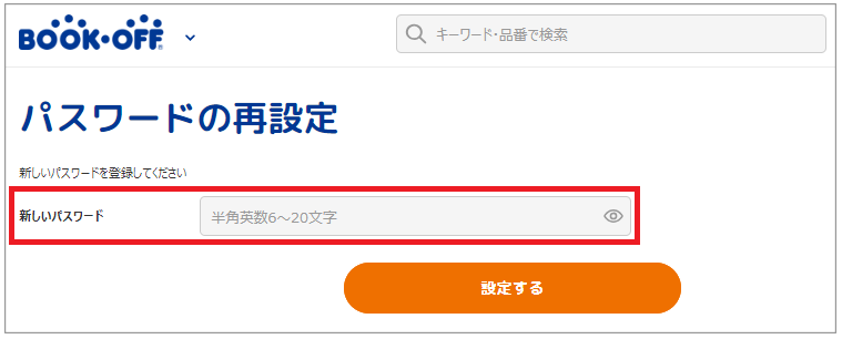 ⑤受信したメールのURLをクリック→新しいパスワードを入力→【設定する】ボタンを押下します