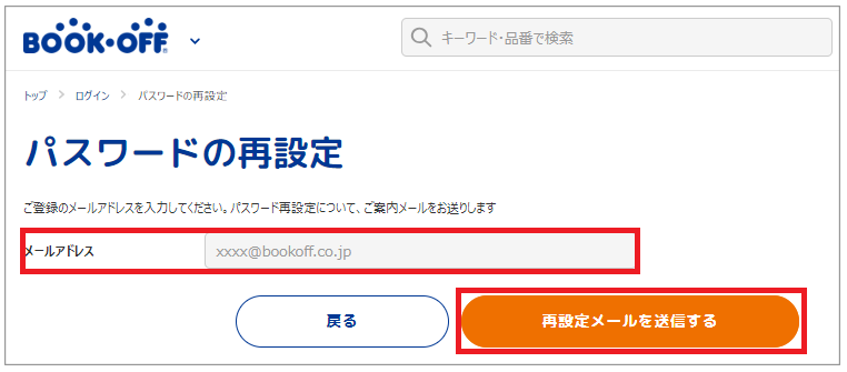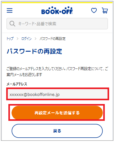 ⑥パスワードの再設定にて、変更後のメールアドレスを入力→【再設定メールを送信する】ボタンを押下します