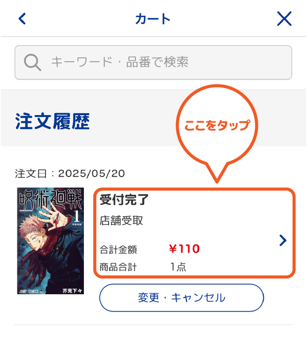 注文履歴詳細画面をお見せいただく