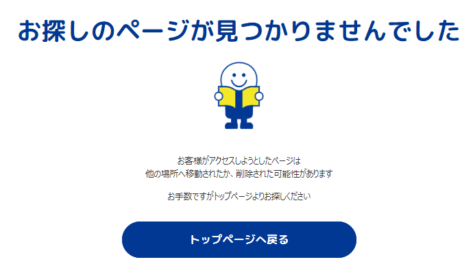 以下の「お探しのページがございません」という画面が表示された場合、お気に入りの登録上限数を超過しています