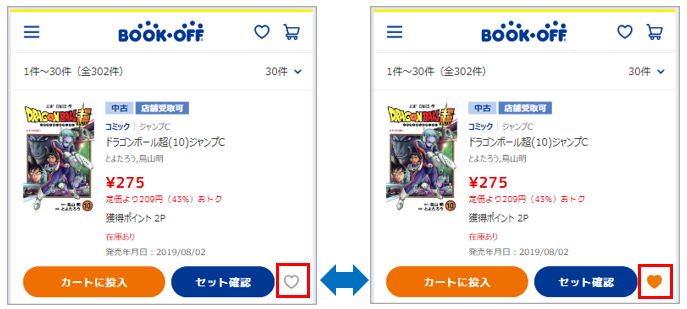 商品ページや検索結果一覧から♡を押下するだけで追加できます!