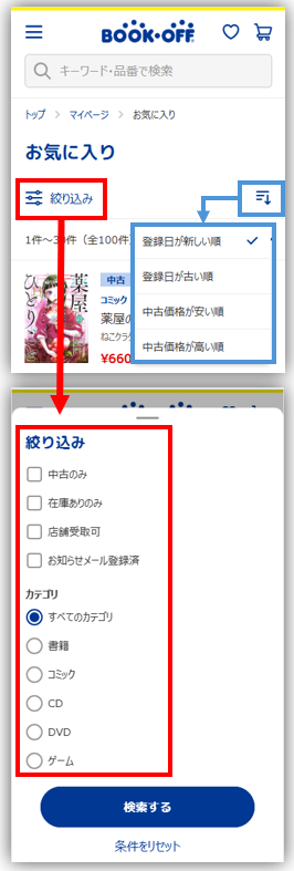オンラ インストアには、気になる商品を登録できるお気に入り機能があります