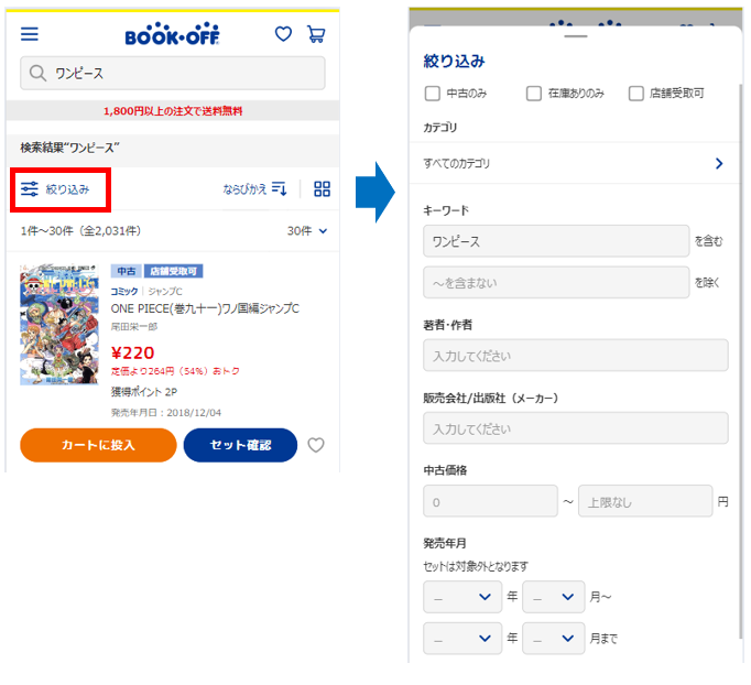例)ワンピース ⇒ ONEPIECEに変換して検索します