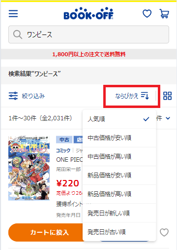 商品を検索した後に、表示された商品 を並び替えることができます